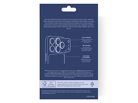 CamGuard gir robust og elegant beskyttelse til iPhone-kameraet ditt. Anodisert aluminium og dobbelt herdet glass med diamantlignende belegg beskytter effektivt mot riper uten å gå på bekostning av bildekvaliteten. Resultatet er skarpe, klare bilder og et design som matcher telefonen perfekt.