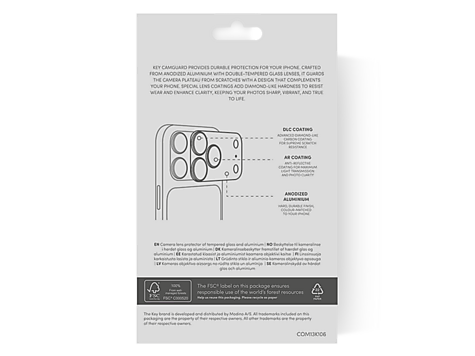 CamGuard gir robust og elegant beskyttelse til iPhone-kameraet ditt. Anodisert aluminium og dobbelt herdet glass med diamantlignende belegg beskytter effektivt mot riper uten å gå på bekostning av bildekvaliteten. Resultatet er skarpe, klare bilder og et design som matcher telefonen perfekt.