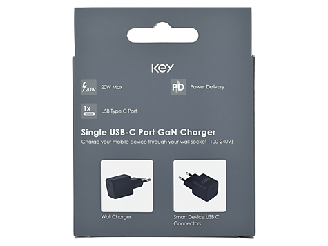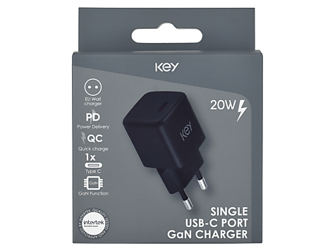 Kompakt 20W GaN‑lader med USB‑C hurtiglading – Smått, effektivt og alltid klar når du trenger rask påfyll av strøm.